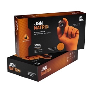 Перчатки нитриловые нескользящие размер L JSN NATRIX (упак 50 шт) 1 упаковка оранжевые
