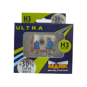 Лампа галогенная МАЯК ULTRA SUPER LIGHT + 100% H3 12V 55W PK22S (2/10/100)