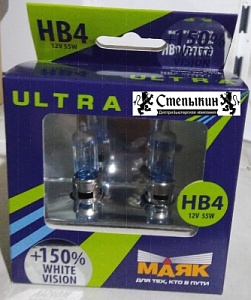 Лампа галогенная МАЯК ULTRA WHITE VISION + 150% HB4 12V 55W P22D (2/10/100)