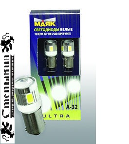Светодиод 12V T 8 6SMD (5370) 1,7W BA9S SUPER WHITE LENS 360 градусов 2 шт ULTRA A-32