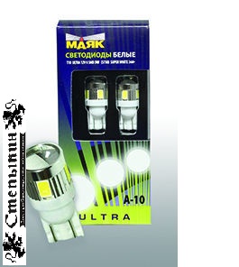 Светодиод 12V T 10 6SMD (5630) 1,7W W2,1*9,5D LENS 360 градусов SUPER WHITE 2 шт УЛЬТРА A-10