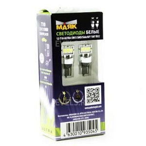 Светодиод 12V T10 2SMD (5630) W2,1x9,5D WHITE 180° (2шт.) УЛЬТРА (габарит)
