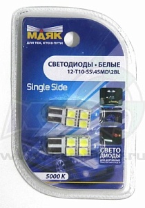 Светодиод 12V T10 4SMD Single Side within W2,1x9,5D WHITE (блистер 2шт.)