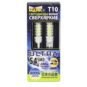 Светодиод 12-30V T10 54SMD (3014) W2,1x9,5D WHITE 360° 6000К (2шт.) В-02
