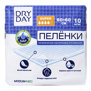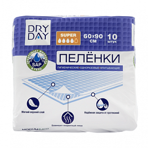 Пелёнки гигиенические DRY DAY одноразовые впитывающие super 60х60 10шт (18)