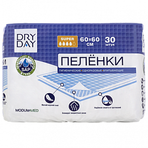 Пелёнки гигиенические DRY DAY одноразовые впитывающие super 60х60 30шт (6)
