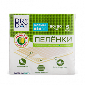 Пелёнки гигиенические DRY DAY одноразовые впитывающие normal 60х60 5шт (36)