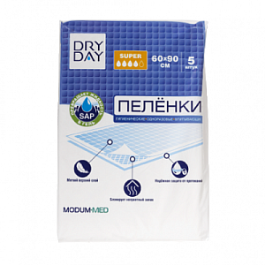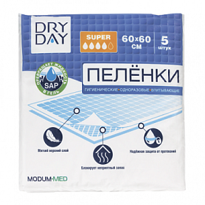 Пелёнки гигиенические DRY DAY одноразовые впитывающие super 60х90 5шт (24)