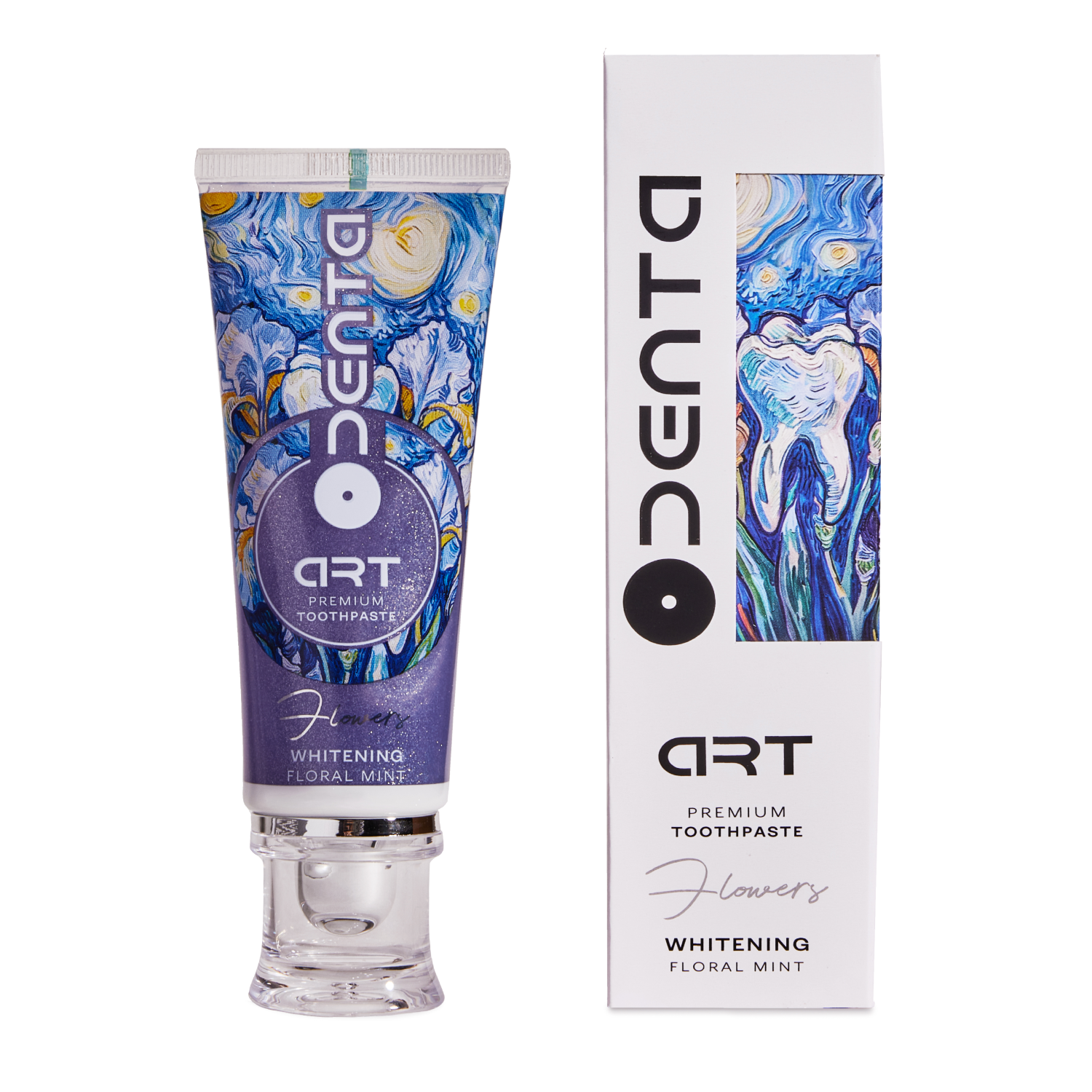 Премиальная зубная паста ODENTA ART FLOWERS Whitening Floral Mint – это уникальная формула вкуса, комфорта и эстетики. Обеспечивает комплексный уход за всей полостью рта и эффективное осветление эмали. Благодаря отбеливающим и освежающим свойствам продукта Вы сможете поддерживать безупречность своей улыбки. При регулярном ежедневном использовании паста поможет справится с налетом и устранит потемнение эмали, что особенно актуально для любителей кофе, чая, ценителей вина и для курильщиков. Живописная композиция цветочных ароматов, где изящные ноты ириса и розы поддержаны свежестью мяты. Это как эмоции, выплеснутые на холст в ярких изломанных красках, где роскошь цветения и сочность аромата передаёт все великолепия жизни, счастья и любви. Элегантный и стильный дизайн упаковки делает зубную пасту украшением полки в ванной комнате, а прозрачная туба позволяет видеть расход продукта.