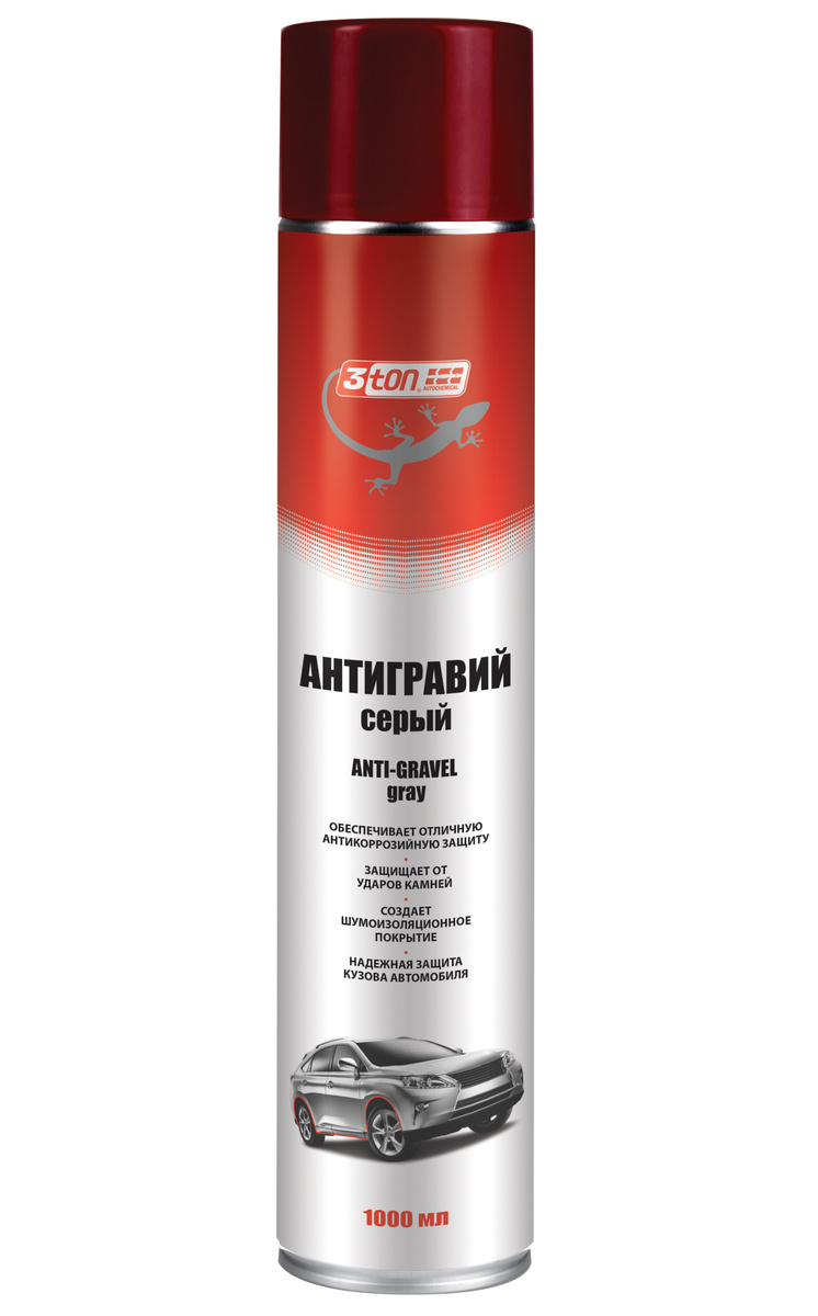 3ton Антигравий — соединение на основе синтетических смол, бутадиен-стирольного и винилхлоридного каучуков, наполнителей, ингибиторов коррозии и функциональных добавок в органических растворителях. 3ton АНТИГРАВИЙ предназначен для защиты нижней части кузова автомобиля, наиболее подверженной агрессивному абразивному воздействию песка, щебня, гравия. Покрытие обеспечивает эффективную антикоррозионную защиту и дополнительную шумоизоляцию кузова автомобиля. 3ton АНТИГРАВИЙ образует эластично-упругое покрытие, гладкое или структурированное черного цвета.